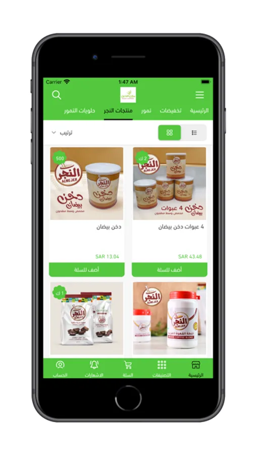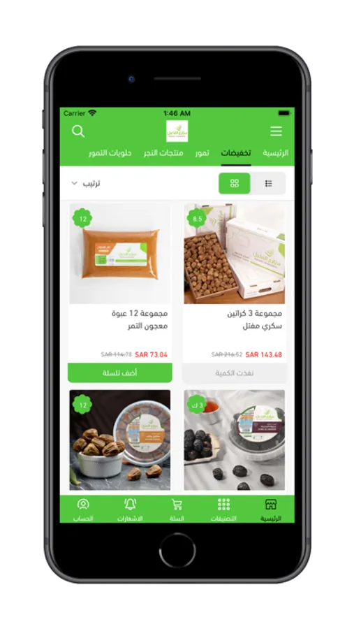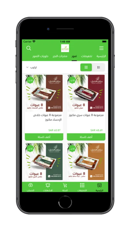 منصة الكترونية لعرض منتجات شركة مزارع النخيل للتمور من التمور السعودية المنتقاة بعناية فائقة و الحاصلة على علامة التمور السعودية