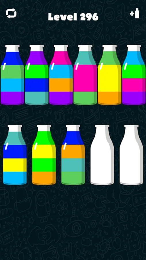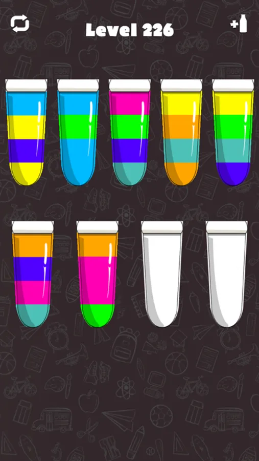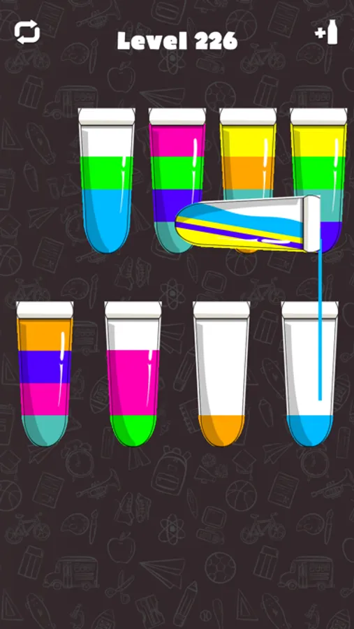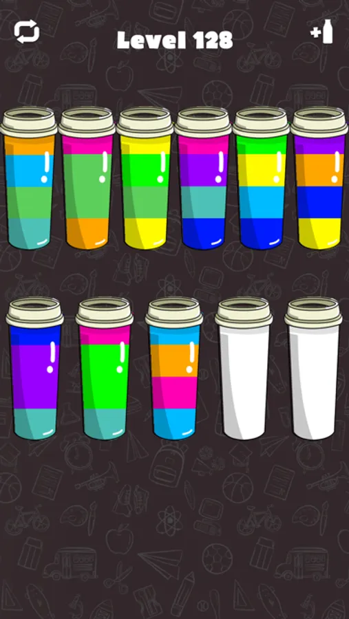 Try to separate the colored water from the glass until all colors are the same. A challenging yet relaxing game to exercise your brain!