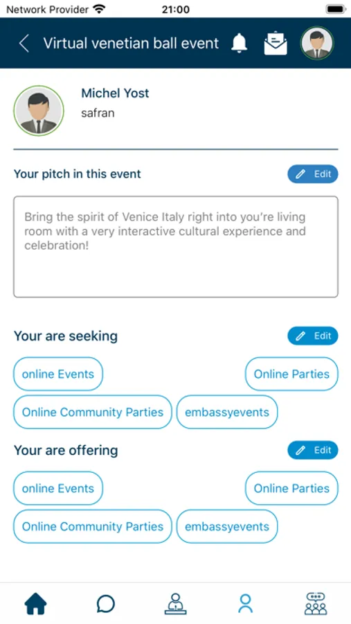 Present yourself with a profile to match with other attendees