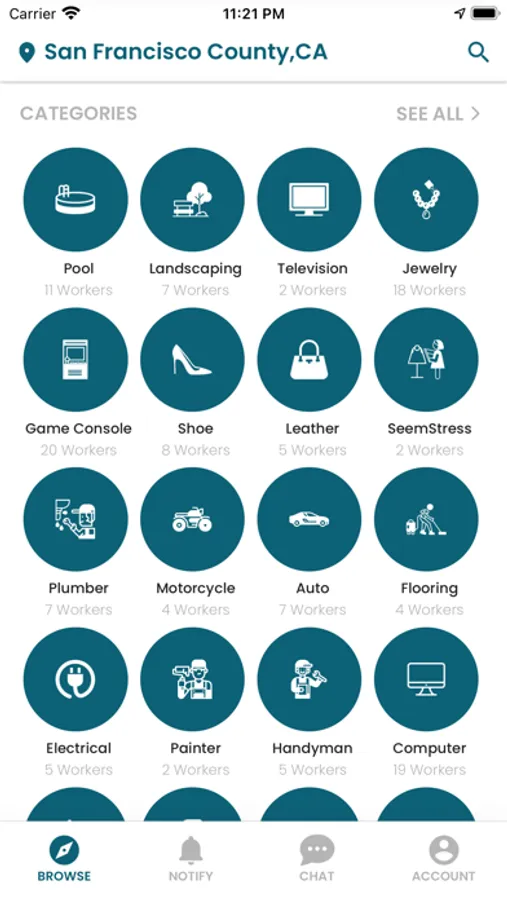 • Pick the closest technician for the category in your area and use our "lets chat" messaging feature to contact them directly.