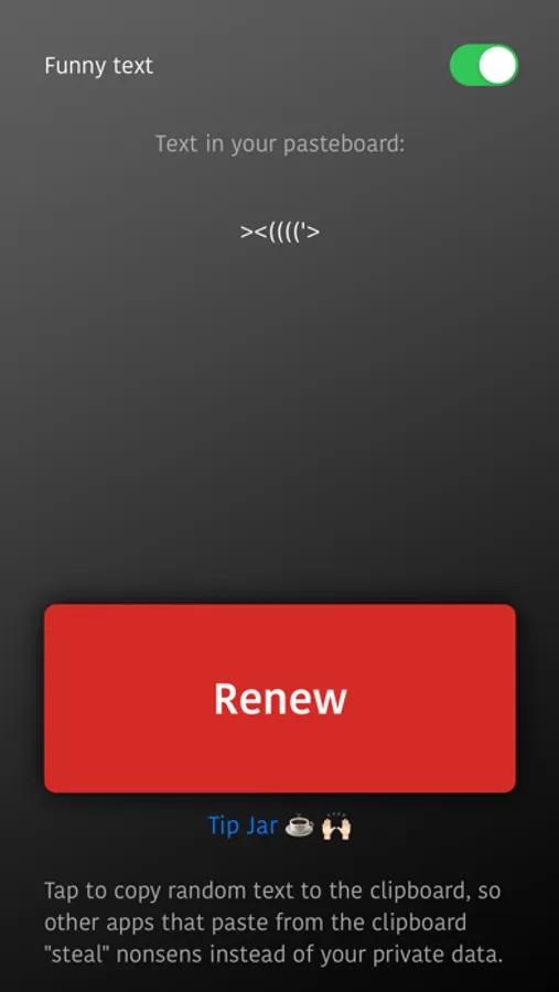 When you open CopyStop, it paste random useless text to your clipboard, so that afterwards you can safely open the app that always tries to "steal" your personal data.