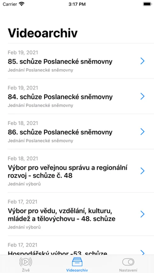 Aplikace umožňuje sledování video obsahu z oficiálního webu Poslanecké sněmovny Parlamentu České republiky.