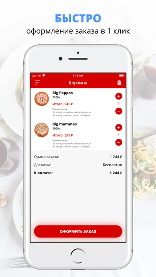 Скачивайте наше приложение, оформляйте заказ и наслаждайтесь любимой едой, где бы Вы ни были! Приятного аппетита!