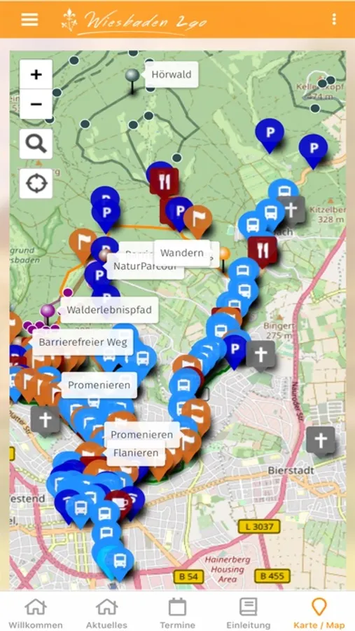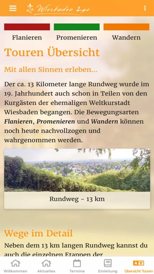 - Current information as well as dates and events related to strolling, promenading and hiking. You can be informed by push notification.