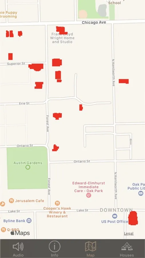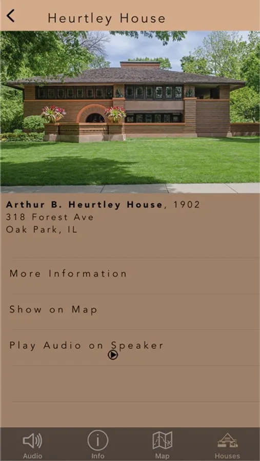 Take the tour of Frank Lloyd Wright architecture in Oak Park, Illinois, where the largest number of early designs by the great architect is found. This app is your guide to all buildings designed by Wright in Oak Park. You can find locations on a map and listen to audio about each one. It will queue up the appropriate audio based on your proximity. Enjoy your tour of these amazing works!