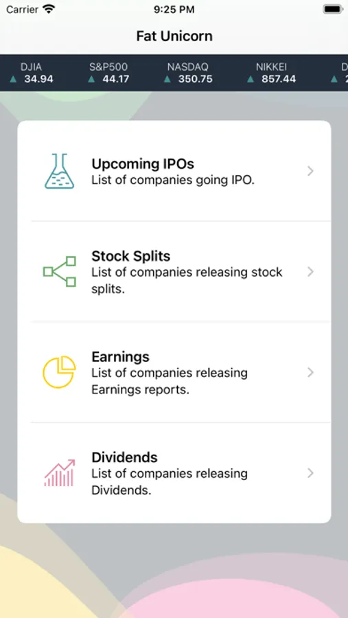 The Fat Unicorn app for iPhone and iPad delivers the latest stock news and dates relating to new ipo’s, company splits, earnings reports and dividend dates to your fingertips.