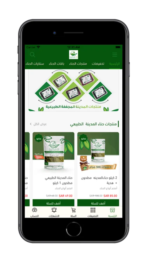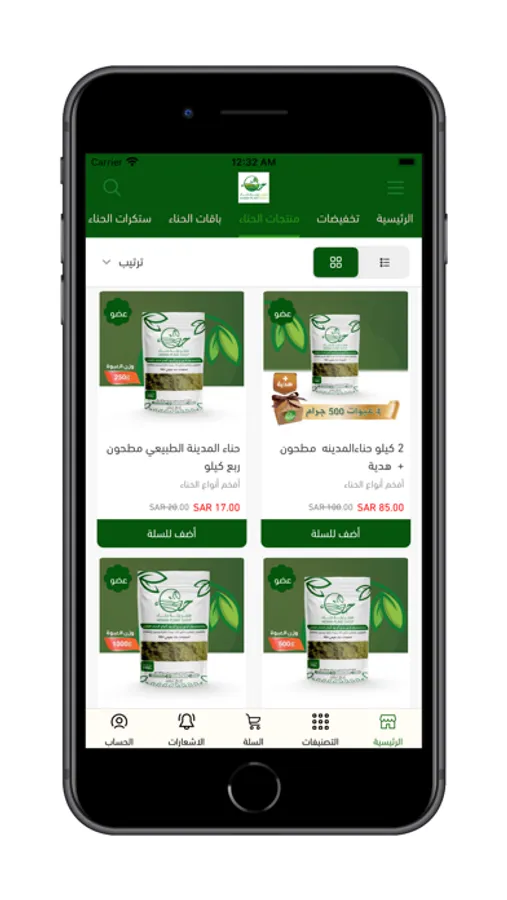 تطبيق متخصص في بيع أفخم وأجود أنواع الحناء الطبيعي من مزارع منطقة المدينة المنورة (ينبع النخل).