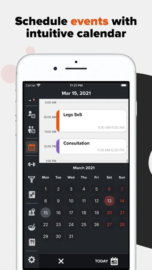 - Schedule and manage workouts, consultations, group sessions or any other event and assign them to