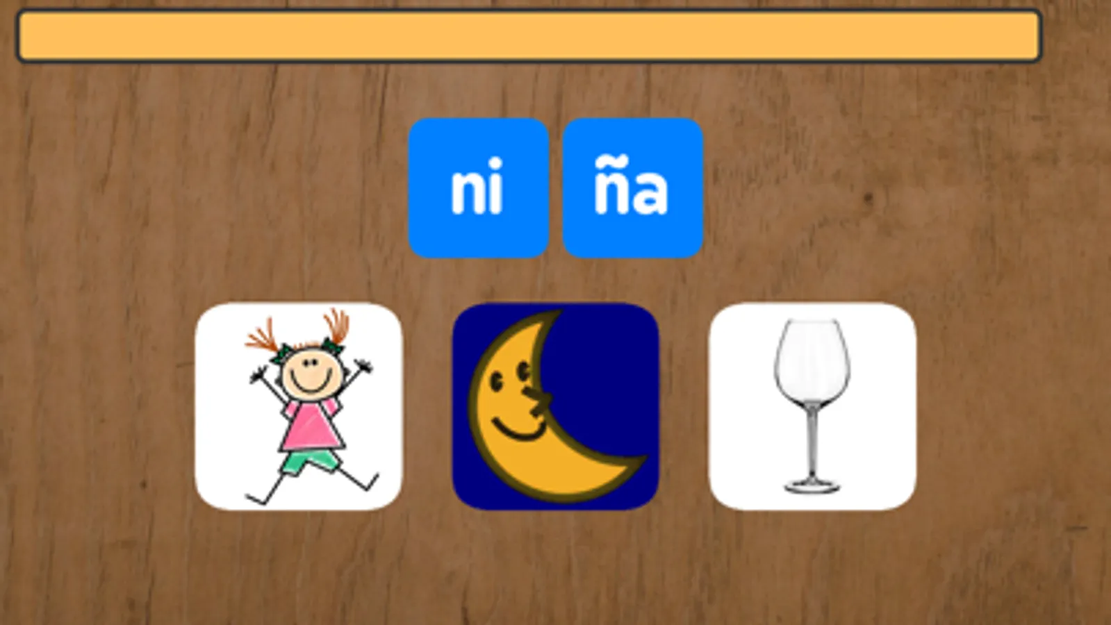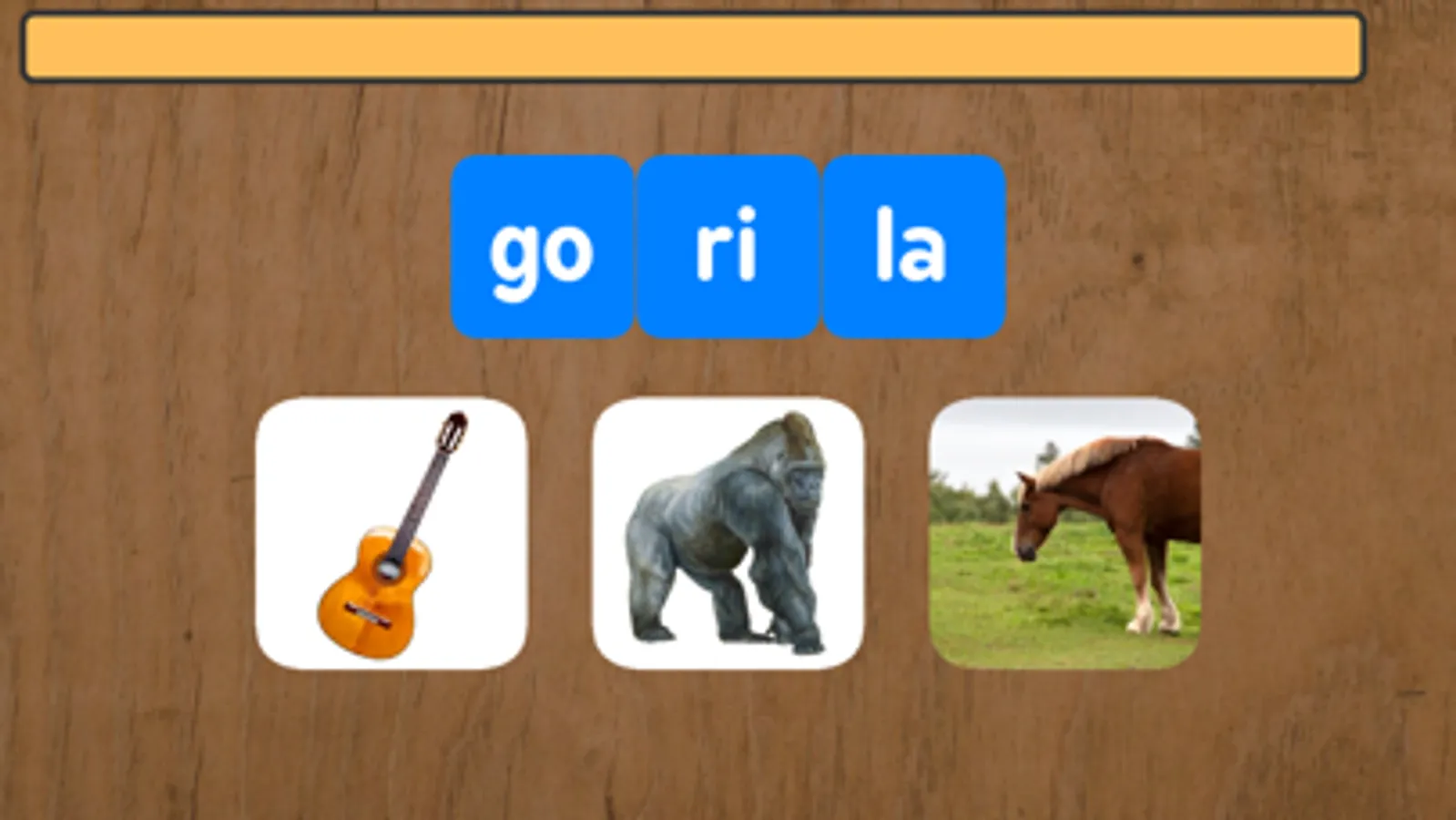 Lea la palabra dividida en sílabas y seleccione la imagen correspondiente. Cuando selecciona la imagen correcta, puede pasar a la siguiente palabra.