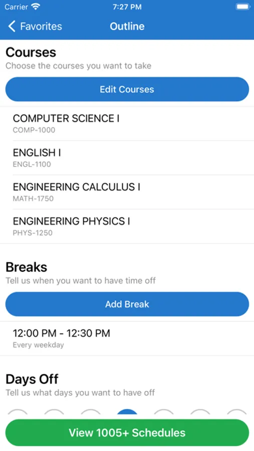 Take the hassle out of registration with ScheduleLab for Colleges! Our lightning-fast algorithm is able to process your needs and calculate the best choices available to you. Need a day off? Want to have your favorite professor? No problem! Just enter your preferences into the app and we’ll try to match them!