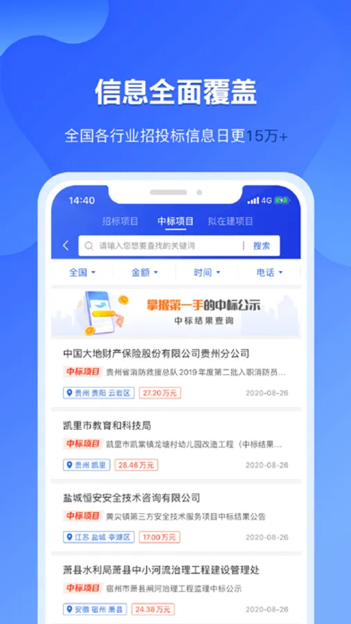 1、信息全面:日均更新招标采购信息15万+