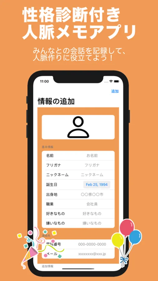 このアプリでは名前や誕生日などの基本情報はもちろん、会話の内容などを一覧画面から1タップで保存できる機能があります。