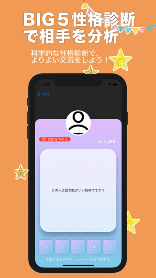 このアプリではたった10個の質問に答えるだけで、科学的に正しいとされている性格診断[BIG5テスト]が簡易的にできちゃう!