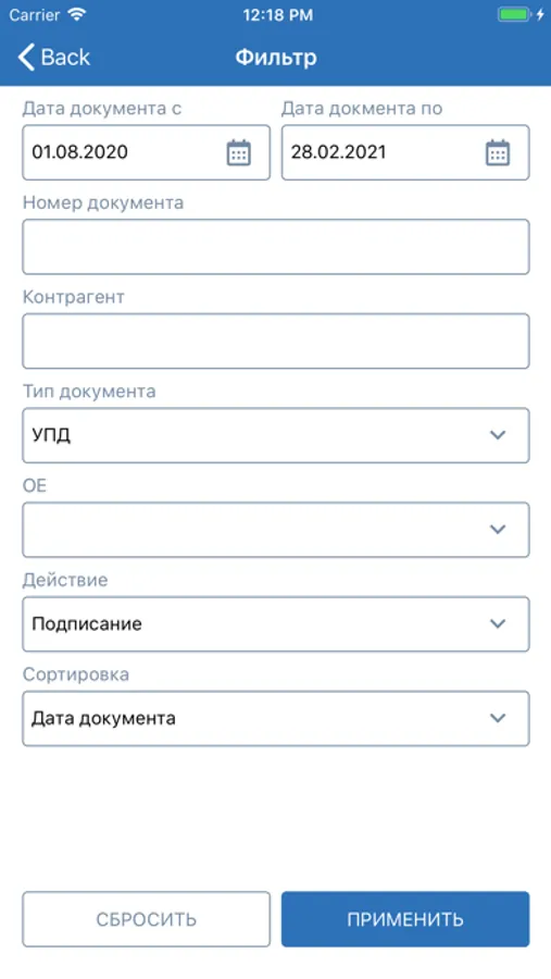 Мобильное приложение предназначено для работы с программным продуктом LegalDoc.