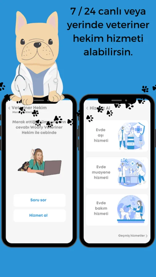7 / 24 soru sorabilir veya yerinde veteriner hekim hizmeti alabilirsin.