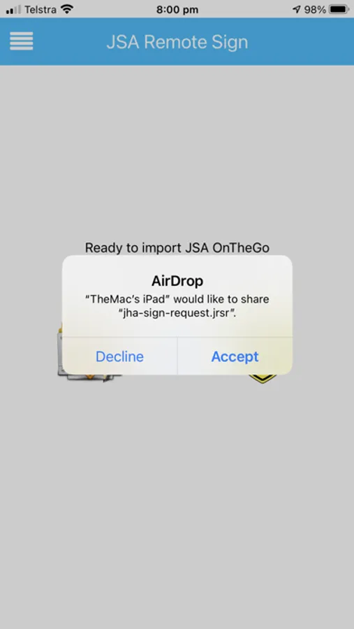 JSA Remote Sign allows you to open signature request files that have been created in our JSA OnTheGo app.