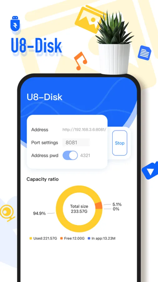 Mobile phone USB flash drive is a cross-platform, easy to operate, ultra-fast transmission speed of extremely fast file backup tools. You only need to transfer files in the same LAN through a computer browser