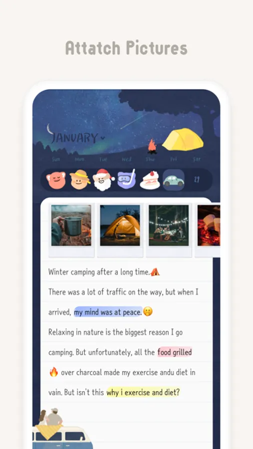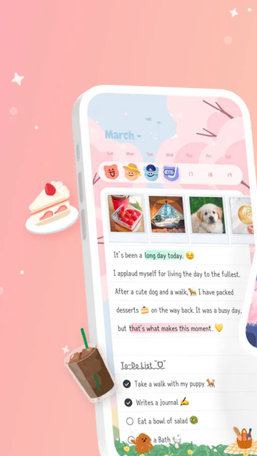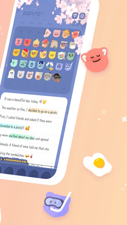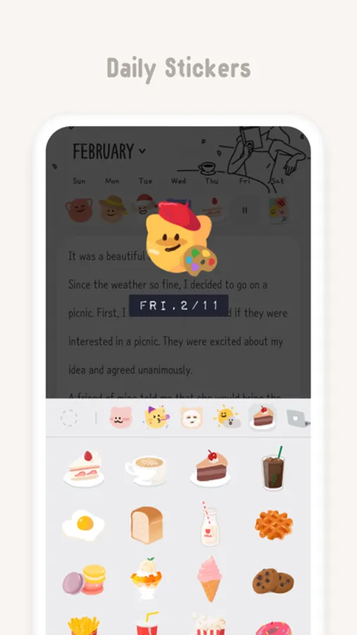- Various emotion stickers by every date
