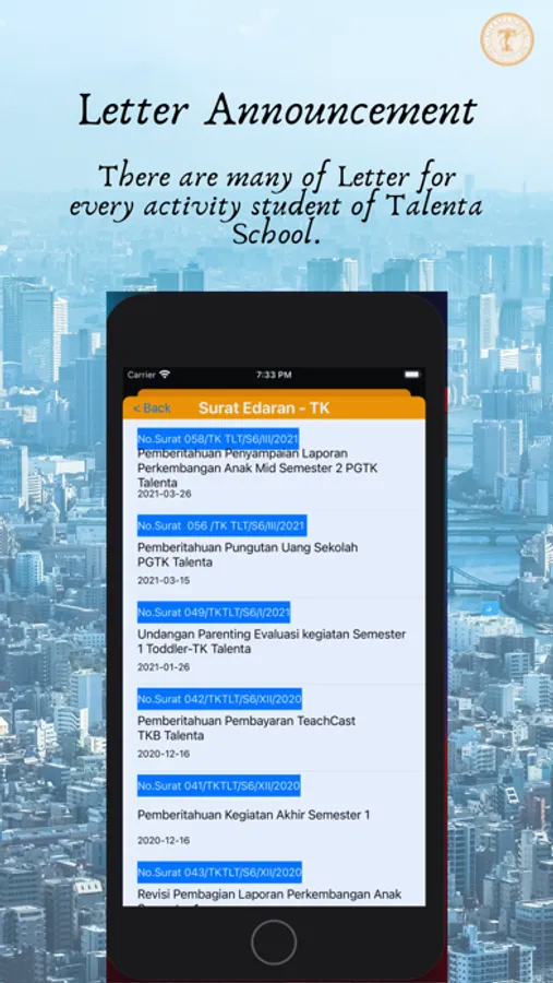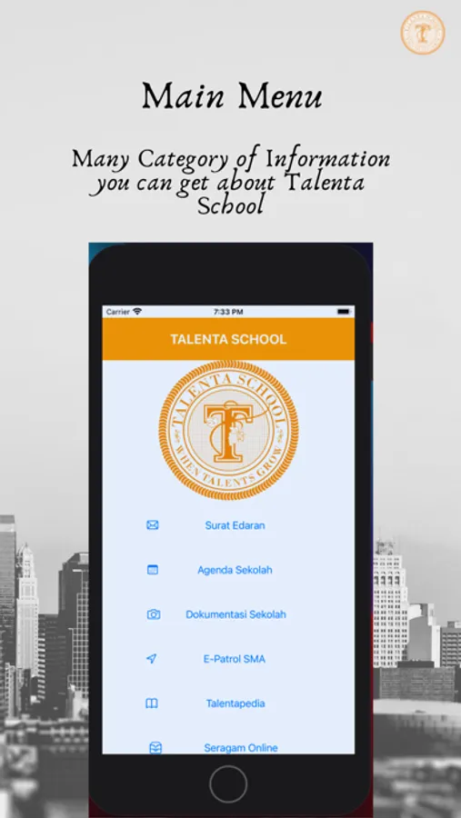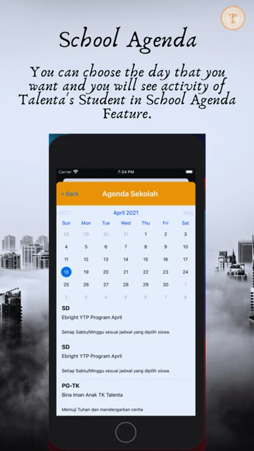This application is made for Student Portal of Talenta School in Bandung City. This application will contain many activity information about Talenta School for example documentation of activity student, announcement , Calendar School.