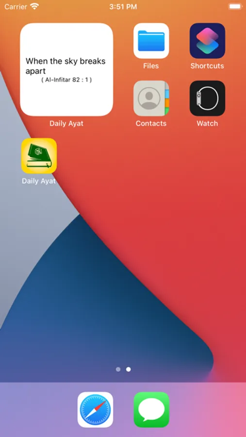 - The app has also a widget extension that shows a random verse. The widget attaches to your home screen and updates the verse everyday automatically.