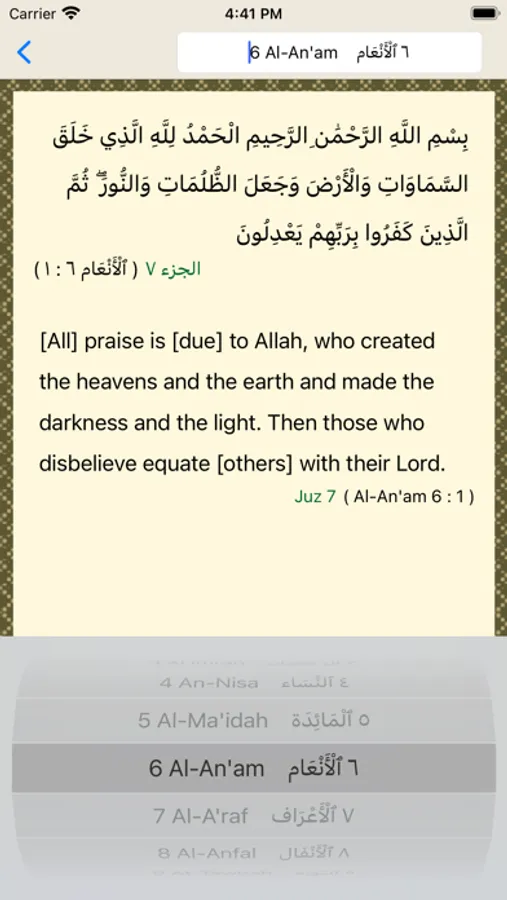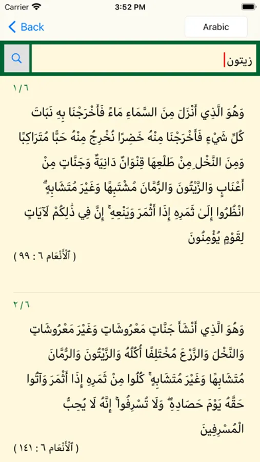 - The app has a powerful search tool in both Quran text and translation. The desired word can be easily found in Quran text without the need for typing the diacritics. The number of occurrences of that word is also displayed.