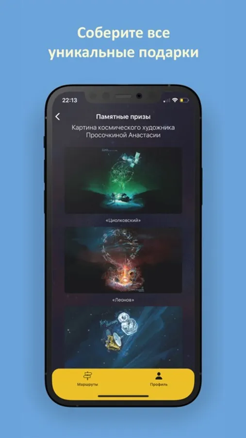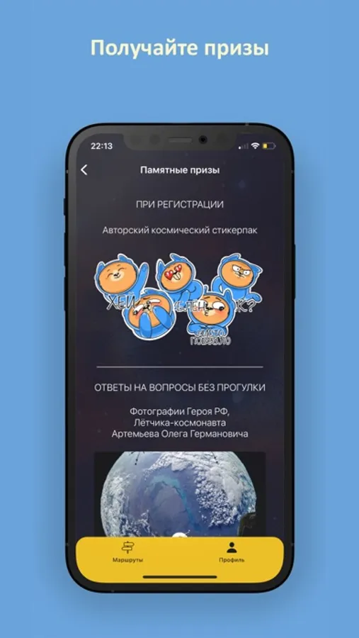 3. Завершив маршрут, вы получите уникальный подарок – фотографию из космоса от космонавта, картину космического художника и авторский стикерпак.