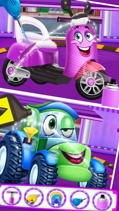 Vacum all spots for a perfect car clean! Use all tools to repair and make your little car buddy happy.