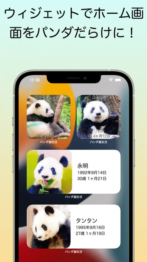 ウィジェットを使ってiPhoneやiPadのホーム画面に好きなパンダの写真を並べることもできます。
