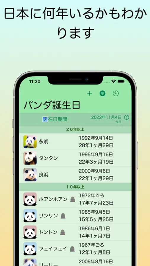 ・パンダが日本に何年いるのか/いたのかもわかる。