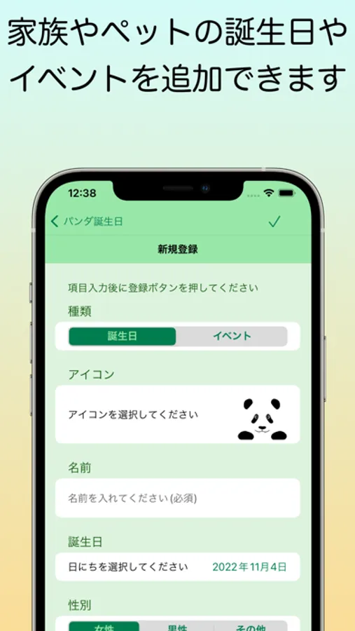 ・ユーザーが家族の誕生日や記念日を登録して、パンダの誕生日と並べて見れる。