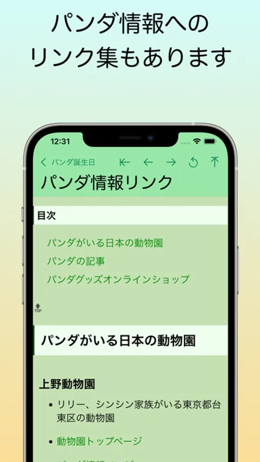 ・パンダ関連情報ページへすぐアクセスできるリンク集が付いている。