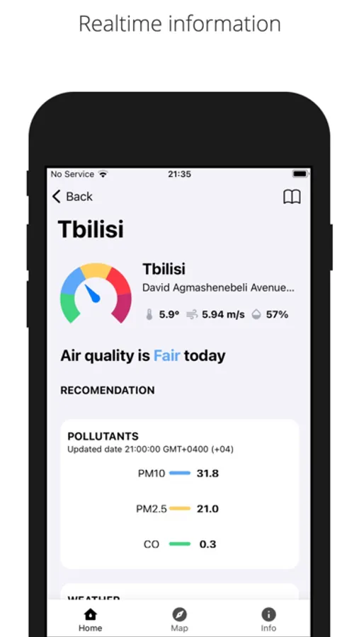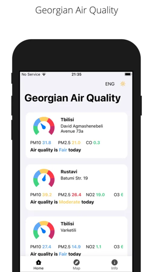 Get Realtime information about Air quality in Georgia, English and Georgian languages