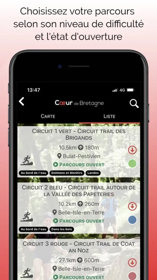 • Plus de 30 parcours trail. 4 niveaux de difficulté, du niveau facile au niveau expert. + de 500 km à parcourir.