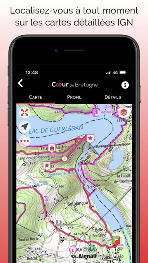 • localisation et orientation sur les cartes détaillées grâce au GPS de votre smartphone