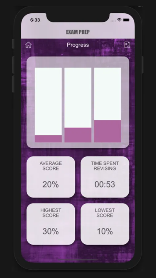 In the progress section, the app will show you how much time you spent preparing for the exam and the progress that you are making.