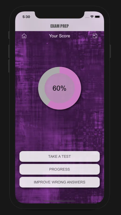 Our app has the ability to offer instant feedback and a final percentage score after every 10 questions completed.
