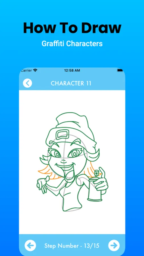 Free Drawing TutorialsDo you want to learn how to draw in simple way? Luckily, you have found the best app to learn how to draw something. Our free drawing app is ready to be your best companion to develop your drawing ability. With our beginner drawing app, you will learn how to draw something step by step. This free beginner drawing app provides so many easy drawing lessons for you. How to Draw Graffiti Character and Word Step by StepDo you love graffiti and want to learn how to make this street art? Then this graffiti drawing tutorial is worth to try. In today beginner drawing lesson, we are going to learn how to draw graffiti step by step. Our easy graffiti drawing app is easy to use. You will find lots of outstanding step-by-step instructions and comprehensive tutorial to learn how to draw graffiti. Do you want to surprise your friends with graffiti drawing or simply learn how to draw graffiti? Then this free street art drawing game is the best for you. Our beginner graffiti drawing app have lots of graffiti drawing lesson, such as graffiti character drawing, sentences and graffiti letters tutorials. Once you downloaded our free graffiti maker, you will find awesome graffiti drawing tutorials such as:How to draw graffiti character step by stepIn this easy graffiti app, you will find lots of graffiti characters drawing tutorials. Pick your favorite graffiti characters then draw it.How to draw graffiti word step by stepIn this easy graffiti app, you will also find so many graffiti sentence ideas. The entire graffiti words are awesome and easy to make. Find your favorite graffiti then draw it.Although you can’t draw something, don’t be afraid to try. Our free street art drawing tutorial is designed by a professional graffiti maker and suitable for any ages. In this beginner graffiti drawing app, you will find the step by step instruction provided clearly so that you will not find any difficulties to draw graffiti. Main Features:- A lot of drawings lesson- Simple and intuitive interface- Art drawing app is totally offline and need no internet.- You can color after drawing- You can save and share your artworks to your friendsThis free graffiti drawing specially made to develop drawing abilities, creativity and imagination through graffiti drawing lessons. Different difficulty graffiti drawing lessons will help you to learn effectively. With this street art drawing app, you will easily imagine what and how to draw graffiti. So, what are you waiting for? Download and install our graffiti drawing lessons NOW.This graffiti drawing tutorials will help you learn how to draw graffiti character and word step by step. Once you downloaded this free graffiti makers, you will be able to draw graffiti like a pro.DisclaimerAll pictures found in this how to draw graffiti characters and word app are believed to be in the "public domain". We do not intend to infringe any legitimate intellectual right, artistic rights or copyright. All of the images displayed are of unknown origin.If you are the rightful owner of any of the pictures/wallpapers posted here, and you do not want it to be displayed or if you require a suitable credit, then please contact us and we will immediately do whatever is needed either for the image to be removed or provide credit where it is due.