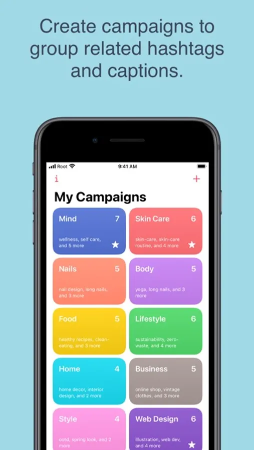 Use campaigns to group related hashtags and captions.