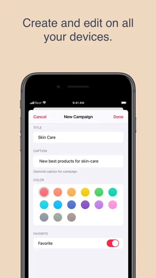 Make each campaign unique by picking a color. Edit campaign's title, hashtags and captions.