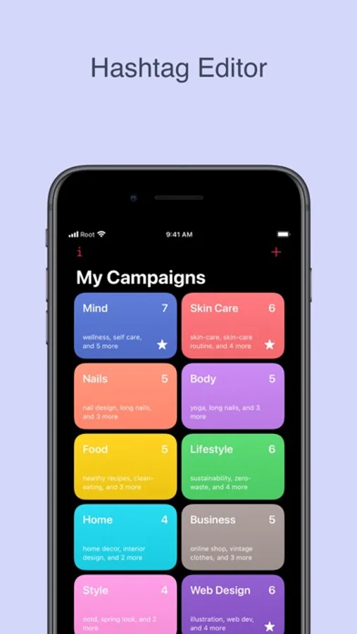 With Hashtag Editor you can neatly organize all your hashtags and captions. Create a campaign, and add hashtags and captions for that campaign. Quickly copy your hashtags or captions to clipboard, and paste it in a social media app or website.