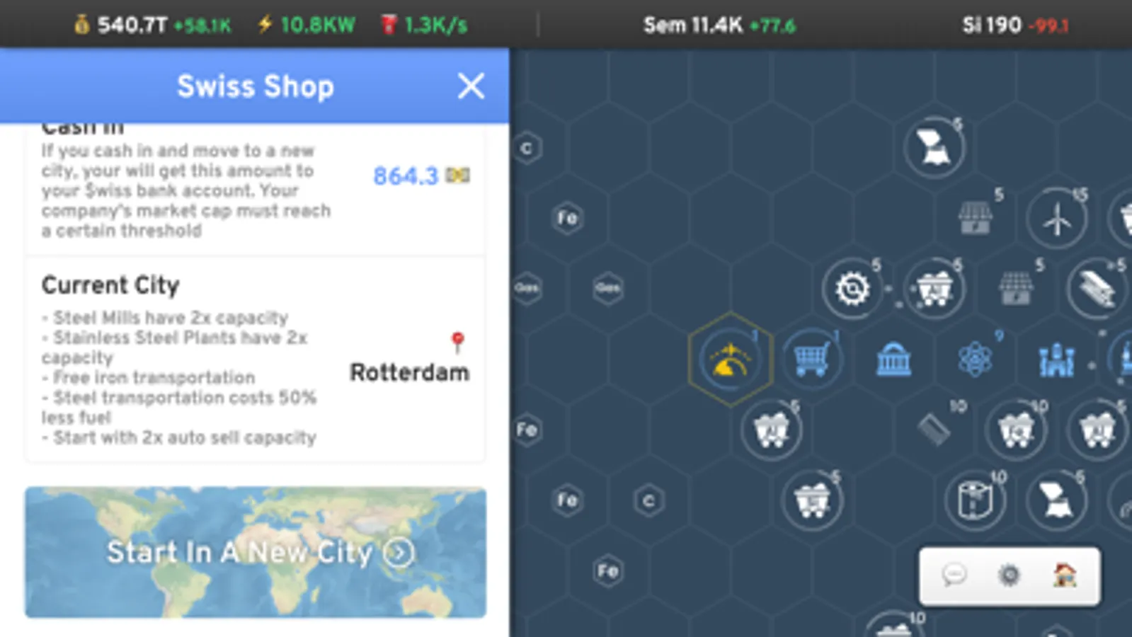 Prestige allows you to unlock new maps with new resources and endless possibilities. You also earn Swiss money to unlock permanent upgrades to help with start faster and expand bigger.