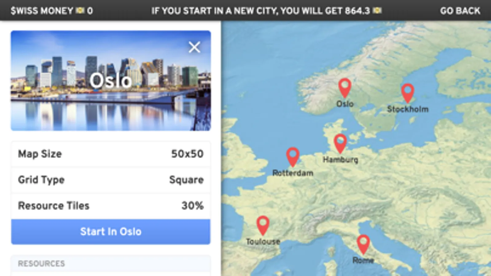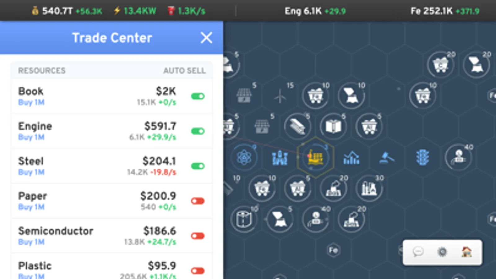 - 85+ different resources to produce, buy and sell