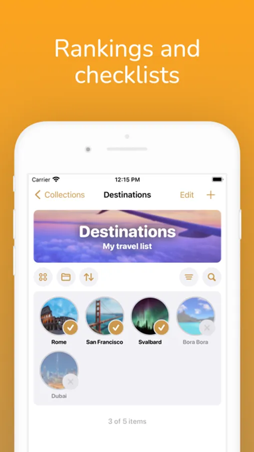 Create a new collection in the app, and then add all the items in your collection to it. You might opt for a checklist – which lets you keep track of which items you have and which you don’t – or a ranking – which assigns numbers to each item so you can rank your favorites.