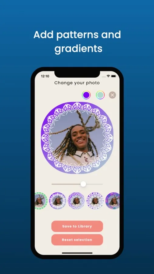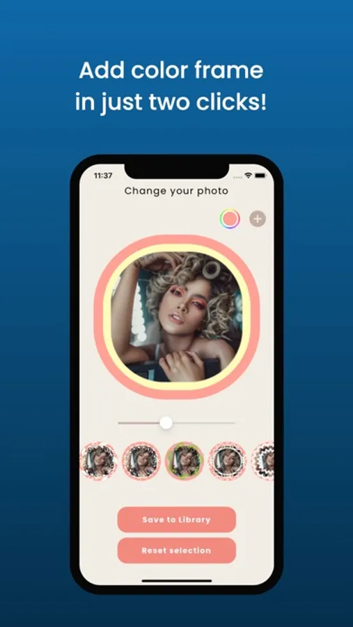 Add your picture and select frame width and colour. You can also add a pattern or gradient.