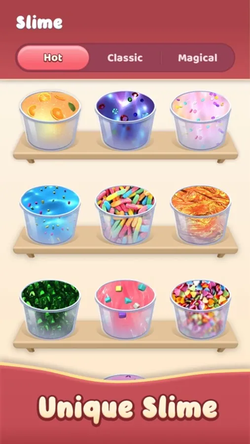 We've prepared 50+ satisfying slimes for you! Including classic and magic slimes, while playing the realistic slimes, you will get relax and release stress. Choose an anti-stress slime, tap and stretch it as real slime with ASMR sound.