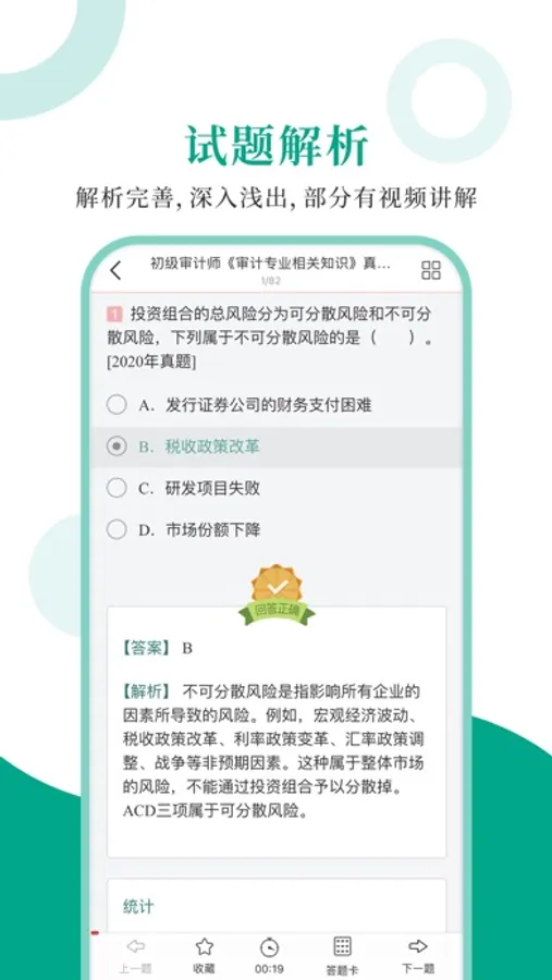 专为审计师考试精心准备的考试配套题库,每一道试题都有答案解析,为考试提供了充分的复习准备,可随时随地学习练习,支持手机、平板多端同时使用。