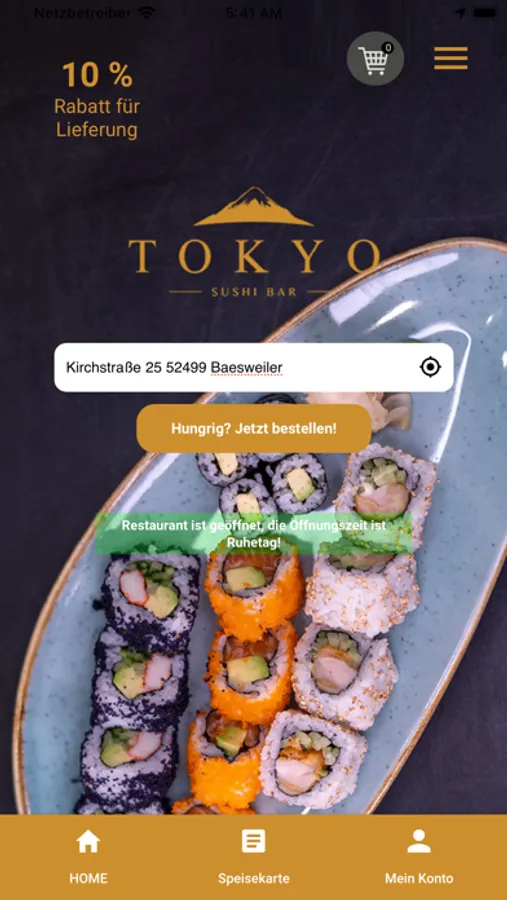 Die Tokyo Sushi Bar ist ein Restaurant im Herzen von Baesweiler. Wir fertigen feinstes Sushi nach traditioneller Art, wie auch ausgezeichnete moderne Spezialitäten. Beste Zutaten und hochwertigste Handwerkskunst sind unser Anspruch an ein kulinarisches Erlebnis der ganz besonderen Art. Wir freuen uns, Sie als unsere Gäste begrüßen zu dürfen.