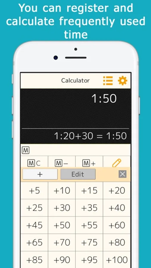 Minutes that are often used for calculations (15 minutes, 30 minutes, etc.) can be registered and used for one-touch addition.
