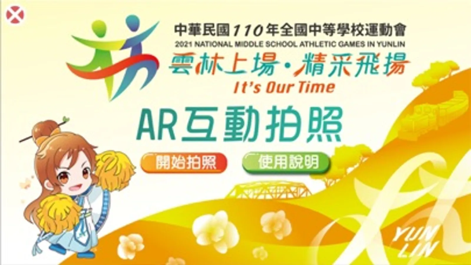 開啟APP進入主畫面,點擊「開始拍照」即出現掃描畫面,在雲林舉辦的110年全國中等學校運動會現場尋找大會LOGO,掃描LOGO後,就會看到大會吉祥物-雲林小子、蘭心妹妹,可以與其互動,互動後還可以和他們一起拍照!拍照時可自行調整吉祥物位置及大小,拍出最滿意的合照喔!