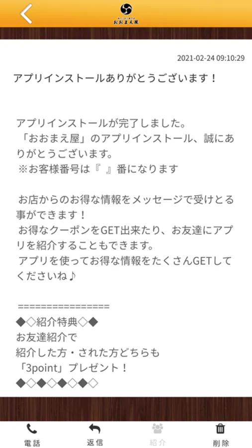 このアプリでは、おおまえ屋の最新情報の受け取りや便利な機能を使う事ができます。